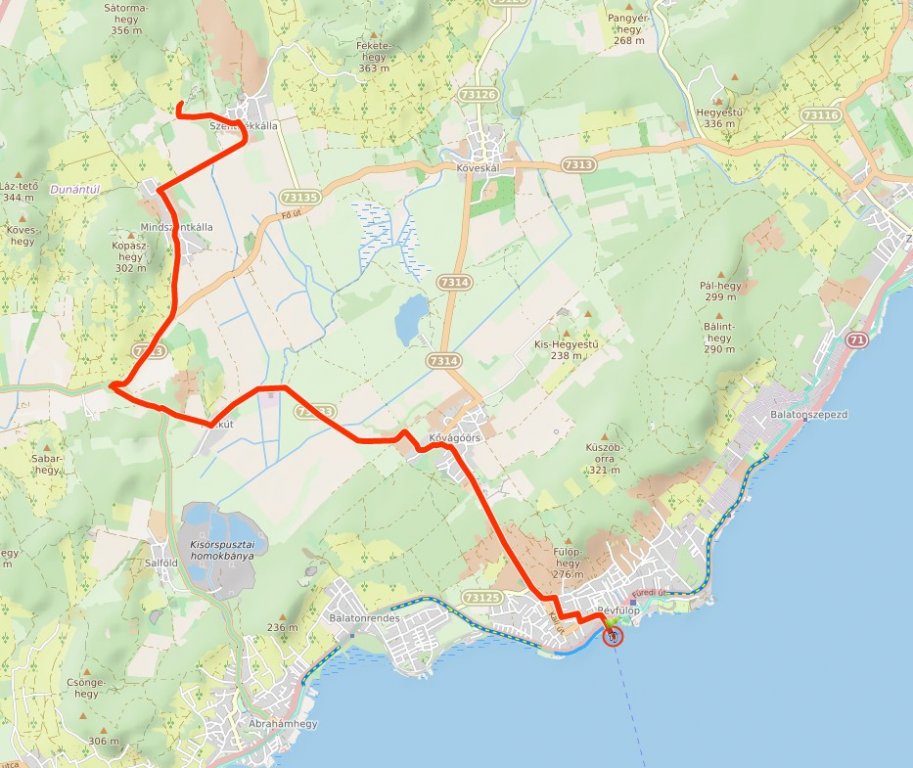 Révfülöpről a Balaton partjáról indulunk egy 15km-s túrára (ha vissza is jövünk akkor 30). Közúton haladunk végig, Kővágóőrs, Kékkút, Mindszentkálla, Szentbékálla útvonalon. Itt pedig eltekerünk a Kötengerhez, táblák jelzik, mindenképpen érdemes megnézni.