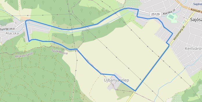 Kerékpáros körtúra Alacska és Sajószentpéter között. Nagyobb részen aszfalt, de egy jó kis terepes rész is van benne, kisebb domb megmászásával. Bárhonnan kezdhető és bármely irányba teljesíthető. Alacskáról indulva az Ady úton át feljutunk a domra, onnan balra visz az út Sajószentpéter felé, ami a parasznyai útba vezet bele. Azon balra Sajószentpéter felé megyünk. Péteren az első lehetőségnél balra, majd jobbra, út végén szintén balra. Ez elvisz az Alacska felé vezető úthoz, amin balra eljutunk Alacskára. Kedvcsináló videó: https://www.relive.cc/view/vPOpN7K77Rq