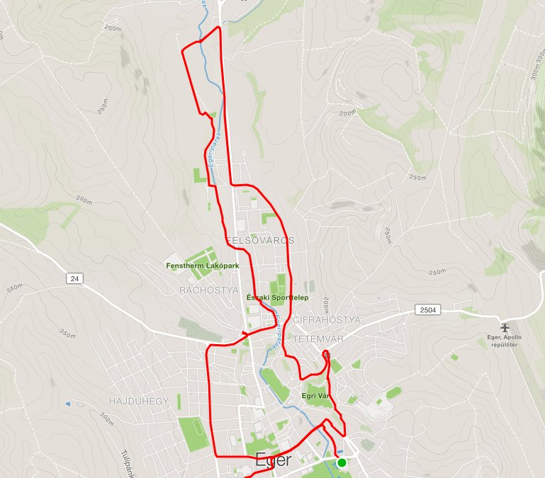 2018. 05.10-én Egerben volt egy Night Ride. Annak az útvonala tekerhető ebben a túrában, térképet mellékeltem hozzá. A Dr. Agyagási Dezső park ból indulunk a Klapka úton, Eszterházi tér, Törvényház út. Majd ráhajtunk a 4 sávos elég forgalmas Vörösmarty utra. A viadukt előtt jobbra letérünk róla. A Malom uton elmagyünk a kerékpárútig, majd azon egészen a Shell kúti elágazásig. Majd a LIDL mögötti összekötú úton a Felnémeti felé. Innen újra csak a forgalma s 4 sávos úton indulunk visszafelé. A Cifrakapu utra térünk le a lámpánál balra. Innen már újra jobb a forgalom picivel. Haladunk a Régi Cifrakapu. u. – Janklovics u. - Balassi u. - Knézich u. - Torony u. - Servita u. - Vécsey S. u. - Gárdonyi u. – Tinódi tér – Kossuth u. Itt van némi kaptató, hogy megkerüljük a várat, majd vissza jutunk a városba.