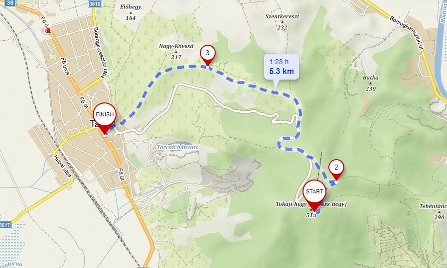 A Kopasz-hegy (513m) tetején áll a 112 méter magas Tokaji Tv-torony, mely 1960-ban épült és 2013 végig TV-URH gerincadó állomásként működött. Ugyan kilátóként nem üzemel, de tiszta időben gyönyörű kilátás nyílik szinte az egész Hegyaljára és az Alföldre. A hegy tetejéről a piros háromszög jelzésen indulunk el, majd a piros vízszintes turistajelzést követjük a szánkópályán keresztül, egészen az aszfaltútig. A piros kereszt jelzést keressük, mert az utat építési munkálatok miatt lezárták, így ez az út tovább nem folytatható a Tarcali-tó irányába. A szőlőbirtokok és gyümölcsösök közt haladva a piros négyzet turistajelzésen folytatjuk utunkat, de nagyon figyeljünk arra, hogy ne csak a térkép vagy a navigáció jelzéseit kövessük, hanem a földek mellett elhaladva keressük a piros négyzet jelzést, mert időközben az útvonalat módosították és ha letérünk az útról, könnyen eltévedhetünk. A szőlőbirtokok elhagyása után a piros négyzet jelzésen érjük el a falut. |