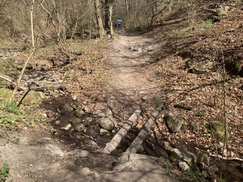 Az egyik leglátogatottabb szurdokvölgy a Visegrádi-hegységben található Holdvilág-árok, melyet ősi, kultikus (temetkezési) helyként tartanak számon, valamint természeti szépsége mellett, a régészek körében is nagy népszerűségnek örvend. A túrát a volt Csikóváraljai turista ház parkolójától kezdjük és visszafelé a műúton a piros vízszintes sáv jelzést keressük, majd jobbra az erdei ösvényre térjünk le ahol már a zöld körtúra jelzéssel kiegészült piros jelzést követjük tovább. Kiskovácsi település felett haladunk el, könnyű, néhol enyhén emelkedő ösvényen melynek végén kiépített pihenőhely és információs tábla jelzi a Holdvilág-árok kezdetét. Az árokba vezető út végig piros kereszt jelzésen halad és kezdetben lassan emelkedő úton, de egyre több alkalommal halad át a patakon. Hidak nincsenek, köveken, a patakon keresztülvetett fadarabokon, a szikla oldalába vájt falépcsőkön kell közlekednünk mígnem elérünk egy tágasabb pihenőhöz, ahol a Domini-forrást találjuk. Innen egyre magasabb és szűkülő sziklafalak közt vezet az utunk, melyet érdemes lentről, felfele irányban teljesíteni a balesetmentes haladás érdekében. A piros jelzés felvisz bennünket egy meredek, a sziklafalba vájt lépcsőn a Weislich-barlanghoz, erre csak akkor menjünk, ha érdekesnek találjuk a barlangot, egyébként a szurdokban haladjunk tovább. Rövidesen elérjük a Meteor-létrát a Holdvilág-árok legizgalmasabb részét és itt a sziklakatlanban találjuk a Remete-barlang bejáratát is. A létra után átkelünk egy fahídon, majd következik a szurdok egyik legszűkebb része, ahol az előrehaladást kidőlt fatörzsek és nagyobb kövek, meredek sziklafalak nehezítik. A szurdok végén egy kiépített pihenőhelyen találjuk magunkat, ahonnan többnyire lefelé, vagy szintben fogunk tovább gyalogolni. A pihenőhely után rövidesen elérjük a zöld kereszt jelzést, amelyen majd jobbra fordulunk és hamarosan elérjük a zöld kör jelzéssel ellátott ösvényt, amely a csekély vízhozamú Gyopár-forráshoz vezet. Innen a zöld négyzet jelzést követjük tovább az erdőben egészen a volt Csikóváraljai turistaházig. |